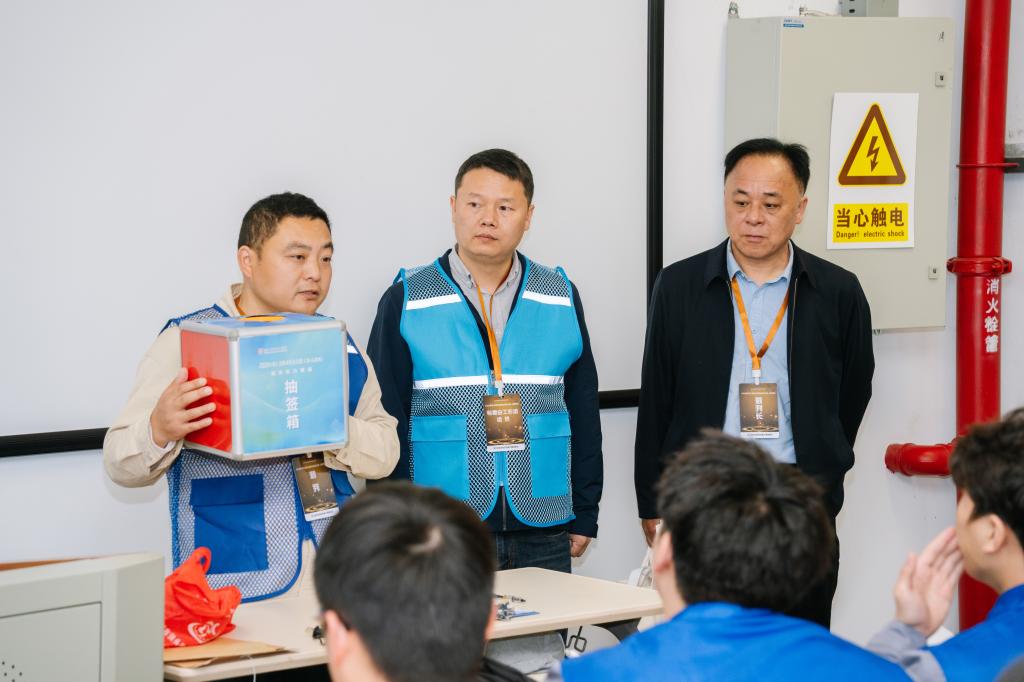 赛场实施封闭管理,工作人员严格落实各项管控措施,现场区域秩序井然、纪律严明。检录过程参赛选手依次排队等候,工作人员逐一核对身份信息与参赛证件,流程规范高效、有条不紊。抽签环节同样公开透明、公平公正,选手们按顺序依次抽取场次和工位序号,现场组织严密。