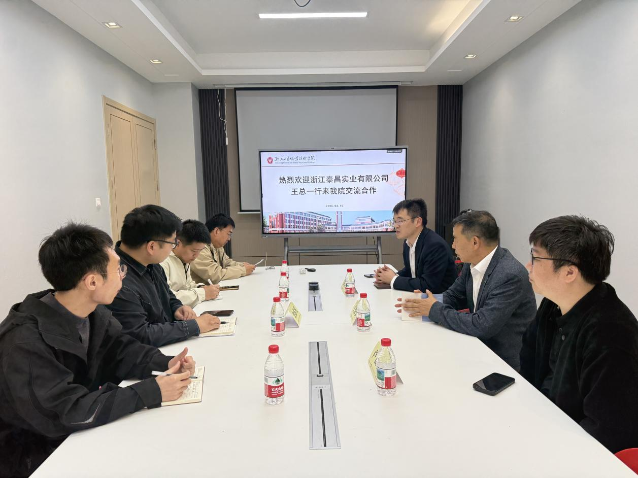 2026年4月15日中午,浙江泰昌实业有限公司王恩久副总经理一行莅临浙江工贸职业技术学院光电制造学院,在科教楼105会议室开展校企合作交流洽谈。光电制造学院副院长金露凡代表光电学院热情接待并出席座谈。
