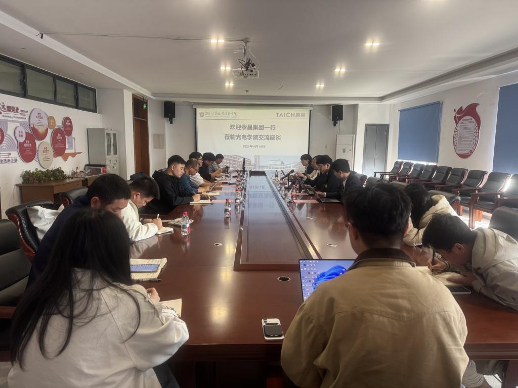 4月14日下午,泰昌集团总裁室成员兼研发中心主任董建尧一行来我校瓯江口校区开展交流座谈活动,学校科研处副处长王坤主持座谈会,产教融合处、光电制造学院、人工智能学院相关负责人陪同交流。