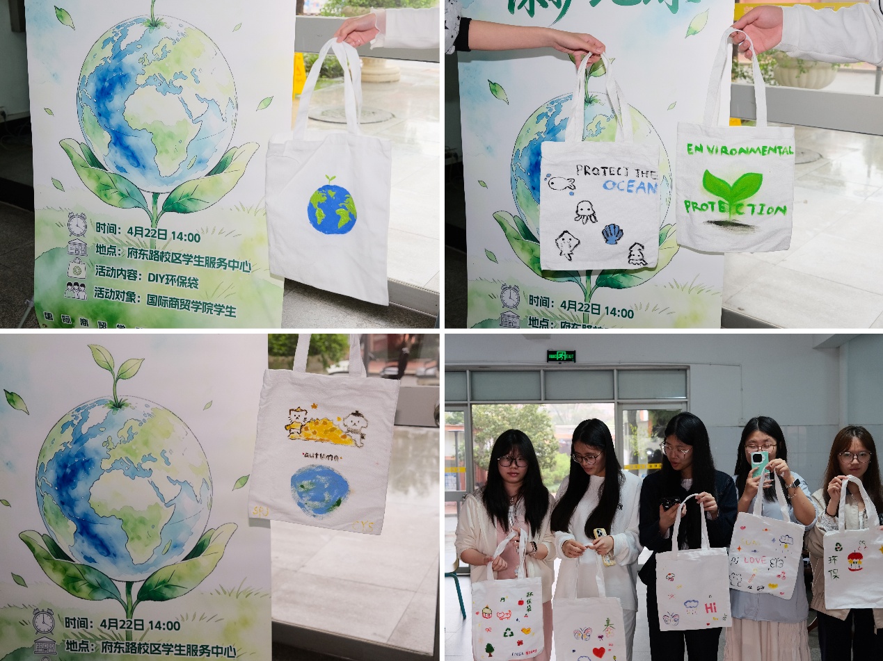 以创意绘青绿,以行动护地球。为响应第57个世界地球日号召,倡导绿色低碳生活,引导青年学子践行环保责任、丰富课余文化生活,4月22日下午,国际商贸学院在“一站式”学生社区服务中心大厅举办环保袋DIY活动。