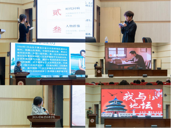 活动现场,读书分享氛围热烈而温馨。同学们精心准备,依次分享了《活着》《也是冬天,也是春天》《平凡的世界》《飘》《我与地坛》五部经典作品。从余华笔下直面苦难、坚韧求生的人生百态,到迟子建文字中寒冬里的温暖与希望;从路遥笔下平凡青年的奋斗与坚守,到《飘》中跨越岁月的成长与蜕变,再到史铁生对地坛、生命与亲情的深情思索,每一段分享都饱含真情。大家结合自身学习生活经历,谈感悟、说心得,将书本中的文字转化为鲜活的思考,在交流中碰撞思想、传递书香,让经典文学的精神力量深入人心。