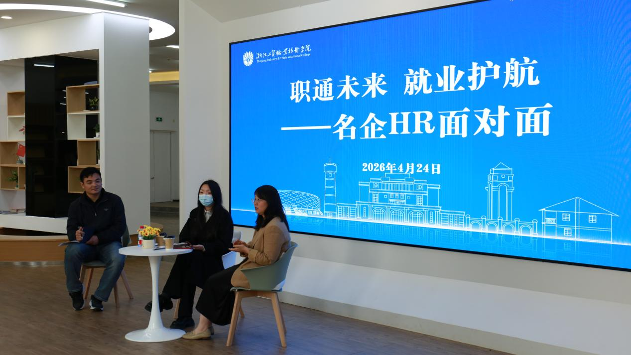 为助力学子提升就业竞争力、精准对接企业用人需求,4月24日上午,浙江工贸职业技术学院在瓯江口校区党群服务中心顺利开展“职通未来就业护航——名企 HR 面对面”活动。本次活动由学校招生就业办主办,特邀浙江森马服饰股份有限公司人事经理潘炜、浙江吉电控股有限公司人事部经理艾芠莅临现场,与同学们深度交流求职技巧与职场经验,为学子就业之路答疑解惑,现场气氛热烈、互动频繁。