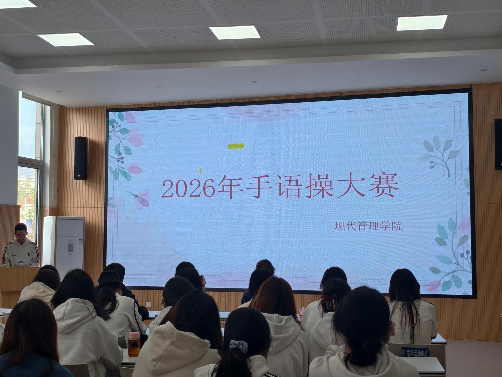 为进一步丰富校园文化生活,扎实推进心理育人工作,厚植学生人文关怀、包容互助的优良品质,2026年4月24日,现代管理学院二级心理辅导站在校咨讯楼举办手语大赛。经过前期遴选,来自学院不同年级、不同专业的14支优秀队伍脱颖而出、同台竞技,以灵动手势传递青春力量,用无声语言诉说温暖心声。辅导员黄丹华、辅导员邹振超、心理部部长肖善芳、副部长方羽轩担任此次比赛评委。