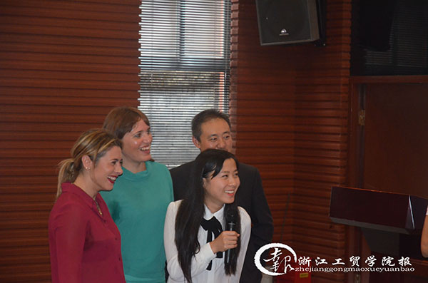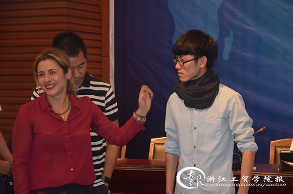 朱塞佩娜·奥瑞琦(Giuseppian Auricchio)副院长结合自己十几年的时尚设计教学与实务经验,从意大利的时尚与设计切入,对国际时尚形势作了深刻的分析和趋势展望,并对温州时尚产业发展提出了宝贵的建议。同时,表达了对中国政府提倡大众创业万众创新的敬佩,认为中国的年轻人身上有巨大的能量和激情,相信时尚理念和设计技术对于他们的创业、丰富生活会有积极的帮助,希望在座的年轻人热爱时尚、掌握时尚创意设计一技之长。期间,还穿插了时尚搭配指导、问答等互动,在座的学生、设计师们积极参与,现场笑声、掌声不断。会后,许多学生主动上台交流,认为讲座改变了她们对“设计”的认识,设计改变生活,时尚无处不在。朱塞佩娜·奥瑞琦(Giuseppian Auricchio)女士的观点新颖,内容精彩,表达富有感染力,业界代表认为专家水平高,拓宽了我们发展时尚产业的国际视野与思路,对温州传统轻工产业转型升级、建设时尚城市起到积极推动作用,希望这样的活动经常开展。