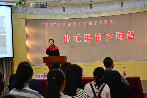 地掷球世界冠军郭晓敏老师回顾了自己从学生到教师的成长经历,努力后的汗水与咬牙后的坚持让她十年之内蝉联5届世界冠军。她寄语在座的同学们要学会感恩;要有恒心、决心、自信心和平常心;要学会自我归零;要敢于拼搏、超越自我。