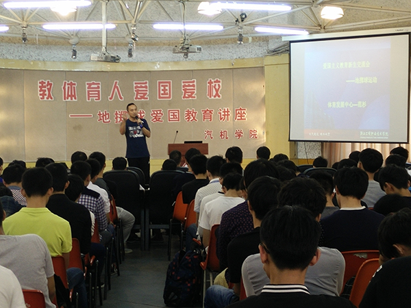 为了践行“立德树人,践行核心价值观”的始业教育主题,更为了增强大学生的爱国爱校情怀,在“中国人民抗日战争暨世界反法西斯战争胜利70周年”之际,2015年10月26日下午,汽机学院联合学院体育发展中心在一号楼多功能厅举行“教体育人 爱国爱校——地掷球爱国教育讲座”。讲座由汽机学院党总支书记冯士活主持,体育发展中心范杉老师和李春峰老师做汇报。