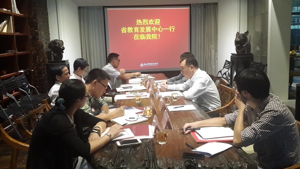 10月15日下午,省教育发展中心主任林成格一行来我校调研指导就业创业工作,我院党委书记盖庆武,省教育发展中心学生就业工作部副主任蔡小忠、程盛杲,浙江工商大学招就处副处长王忠华,浙江传媒学院就业指导中心主任孙丽园,党院办主任王春柳,学生处处长林海春,学生处副处长廖文献陪同调研。