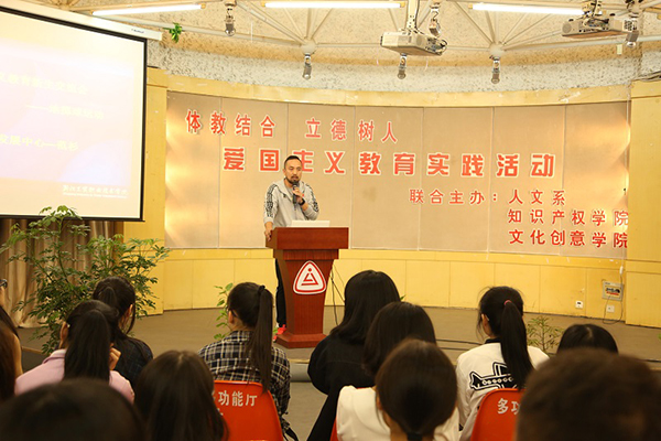 近日,人文系、文创学院、知识产权学院联合在多功能厅举办了一次爱国主义教育实践活动,此次活动以抗战70周年及地掷球体教结合文化与爱国主义为主题,也是本学期新生始业教育的一部分。活动由文创学院张杨燕老师主持,活动中向同学们通报了慰安妇事件和南京大屠杀事件在10.17日成为世界非物质文化遗产的讯息及重要意义,并指出了口头爱国与反对爱国主义的几个错误倾向。同学们一起观看了抗战经典老电影里的精彩片段。文创学院副院长吴同喜老师作了主题发言,他概要描述了祖国从艰苦奋斗到繁荣昌盛的发展历程,并道明爱国必须做到六点:第一爱要祖国,爱家,爱校,爱自己;第二要把自身前途与祖国命运紧紧关联;第三要承担建设祖国的责任;第四要努力学习,学会做人,做事;第五要思索自身的职业生涯规划;第六要坚持参加一项体育运动,锻炼体魄,锤炼爱国精神。