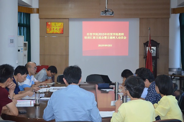 为了推进教师之间的交流与学习,提升教师专业化水平。9月25日下午,经贸学院在1号教学楼6楼会议举行“教师培训汇报交流会暨立德树人动员大会”。经贸分院院长汪焰主持会议,经贸分院全体教师参加了会议。