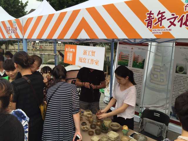 瓯窑工作室学生在两岸青年文化节上向市民展示作品