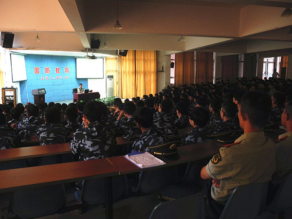 为增进新生的国防思想、国防知识、国防技能等,技师学院(温州校区)于9月19日上午,在阶梯教室举行了新生国防教育大会。温州市海防营周宁教导员和2015级新生班级同学共同参加了此次大会。