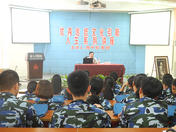9月19日下午,技师学院(温州校区)根据学院党委“推进立德树人,践行社会主义核心价值观”有关精神,在阶梯教室举行了新生传统文化教育主题讲座。特此邀请温州市委党校副校长、温州传统文化促进会副会长陈中权教授为主讲嘉宾。