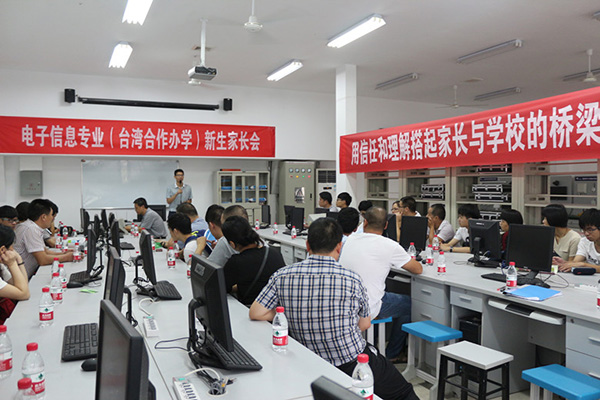 金秋九月是硕果累累的季节,9月19日电子系迎来了又一批台湾合作办学学生,为了更好地加强老师和学生以及家长的沟通,当日下午,电子系在9206教室召开电子信息工程技术专业(台湾合作办学)家长会。会议由党总支副书记吴学亮老师主持,班主任尹清杰、辅导员,以及电信1504班同学和学生家长参加。