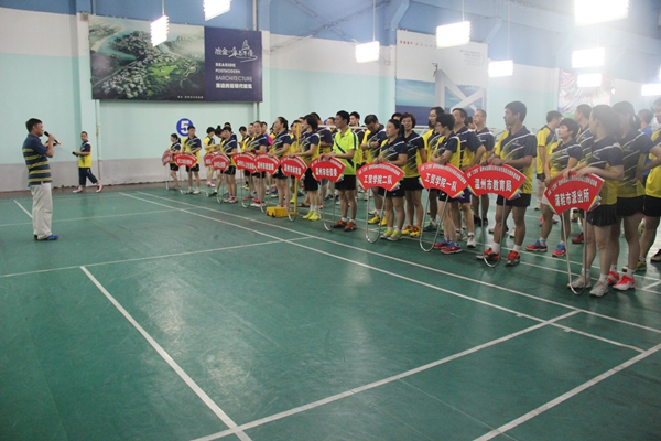 上午,在学院冶金羽毛球场馆举行了简短而热烈的邀请赛开幕式。学院党委委员、副院长倪建发致欢迎词;学院党委书记盖庆武宣布首届“工贸杯”温州市直属机关单位羽毛球混合团体邀请赛正式开始。学院学术委员会主任、教工羽毛球协会会长邱开金主持开幕仪式。