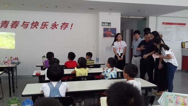 .贺院长与红马甲仰义街道暑期实践队的学生交谈,了解支教内容和实践体会