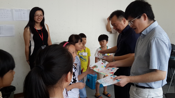 学生支教小朋友们将自己的小作品送给大家