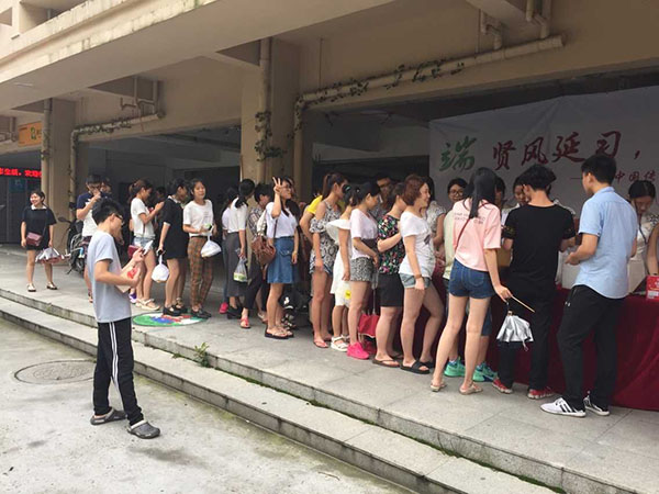 贤风延习,忠孝礼义,鲜明的标题映衬在背景海报上。轻工系学生党支部的各位成员都为筹备这场活动忙碌着,活动以抽题问答的形式进行,奖品分别为粽子、鸭蛋为主。中午12:00活动准时开始,路过的同学都十分热情好奇,纷纷赶来参与活动,大家都排好队伍,先由轻工系余正锋老师在同学的手上点雄黄酒用来避除毒虫、蚊蝇叮咬,驱散瘟疫毒气。接着在同学们手上绑彩绳,彩绳颜色鲜艳能够保佑人平安过夏作以祝福之意。最后同学们开始抽题答题,内容都关乎端午的知识问答,不仅能够考验同学们对端午的了解也同样可以增长大家的知识。,看着大家手里拿着赢来的粽子都笑得合不拢嘴。