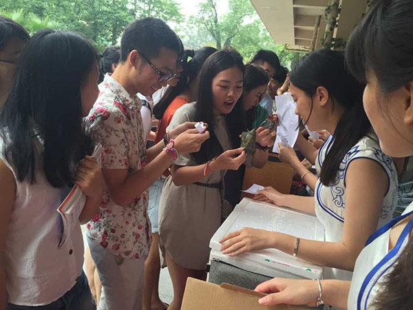 农历五月初五为端午节,又称端阳节,虽然名称不同,但各地人民过节的习俗是相同的。端午节是我国二千多年的习俗,每到这一天,家家户户挂艾叶菖蒲,赛龙舟,吃粽子,饮雄黄酒,游百病,佩香囊。为弘扬中国传统文化,提升人文道德素养。6月18日,轻工系学生党支部在学子广场举办了端午节活动。