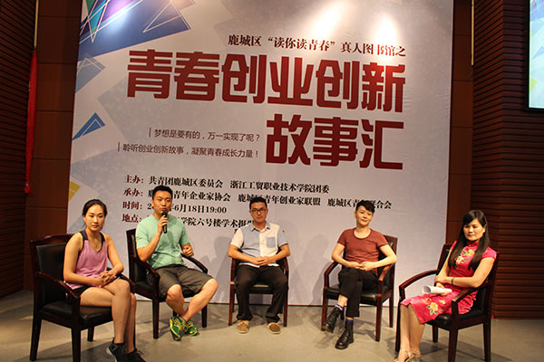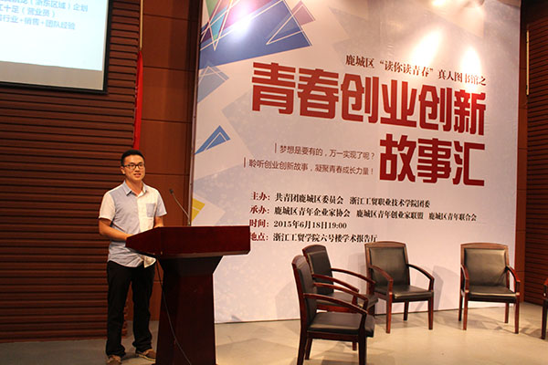 6月18日晚,由鹿城团区委、学院团委联合主办的“青春创业创新故事汇”在我院学术报告厅举行。本次故事汇邀请到了温州云想映象创始人、温州众创创客空间联合发起人陈雷,温州三生文化传播有限公司创始人林聪聪,温州棒棒堂艺术中心创始人、温州市儿童福利事业促进会副会长吕平,温州山鸣农业开发有限公司总经理黄金飞,温州纳智紧固件有限公司创始人郑温宁五位在创业创新领域有所成就的人士与同学们分享创业故事。