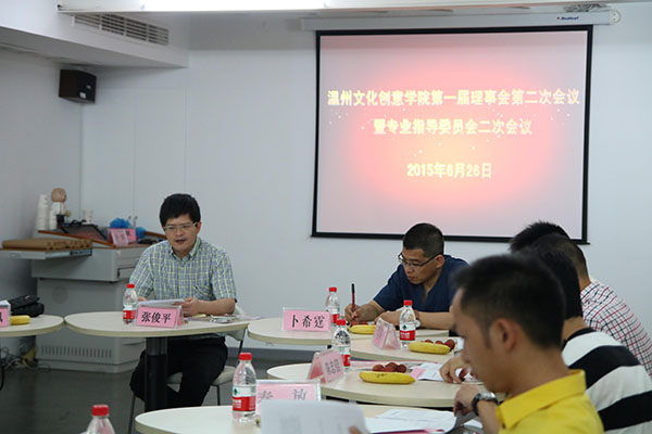 6月26日,温州文化创意学院理事会成员及其特邀企业家代表在浙江创意园召开第一届理事会第二次会议暨专业指导委员会二次会议。参加此次会议的有学院副院长张俊平、文广新局林佩副处长、温州文化创意分院卜希霆院长(中国传媒大学文化发展研究院书记、副院长)、温州文化创意分院副院长吴同喜、特别邀请的企业家以及文创学院的师生代表。