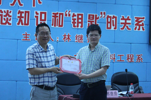 为了提升学生道德修养,自觉践行社会主义核心价值观, 6月2日晚,材料系邀请全国首个公职人员百万道德建设基金创立者林继排先生为全院300多名学生作“善行天下 谈知识和‘钥匙’的关系”道德讲座。