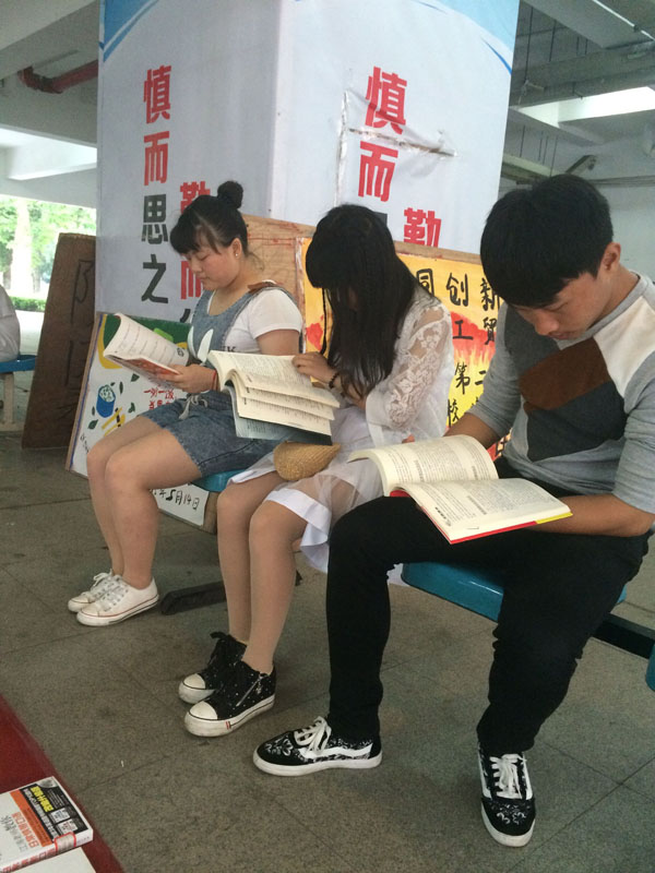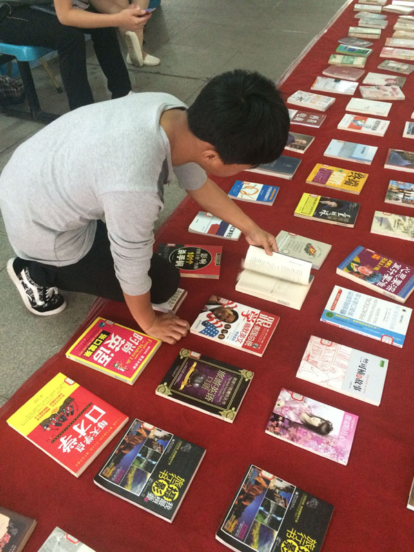 本次晒书活动由学生处、院宿管会及图书信息中心联合主办,书籍共达300多册,种类多样涉及文学、自传、信息、哲学、财经和历史。整齐排列的图书在红地毯上显得格外耀眼,浓浓的书香气息瞬间弥漫了整个学子广场。除了晒书,还能通过这个活动,以书会友,找到和自己志趣相投的小伙伴们一起探讨学习,场地四周专门配备了凳椅,方便同学们相互交流与沟通。此外,只要带上“校园一卡通”就可以当场借书阅读,阅读还有小惊喜,主办方在随机抽取的一部分书籍中夹藏了谜语,答对就可以领取一份精美小礼品。随着现场音响伴奏的进行,参与活动的同学不断增多,他们认真地翻阅图书,沉浸在书海中!