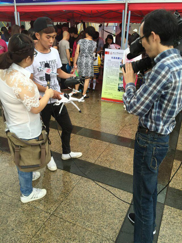 此次活动周,我院参展的有汽机学院的乐高机器人、新能源汽车科普、机动车司法鉴定与维权热线,电子工程系的小型无人机飞行器、智能视力检查仪和材料系的3D打印技术。广场上,很多市民对我院展区的作品十分感兴趣,尤其是钟振忠老师带来的乐高机器人和李庆海老师带来的小型无人飞行器,吸引了大批的学生和家长。李庆海老师一边介绍一边教小学生们操作不同的机器人,他说此行带来了七种飞行器,有灭火机器人、跳舞机器人,主要向市民推广一下,特别是想激发青少年对科技的兴趣。温州市实验小学学生何聪汝在亲手操作了机器人后说: “我还是第一次玩这么多不同功能的机器人,真正感受到了科技的奥秘和神奇,很开心。”
