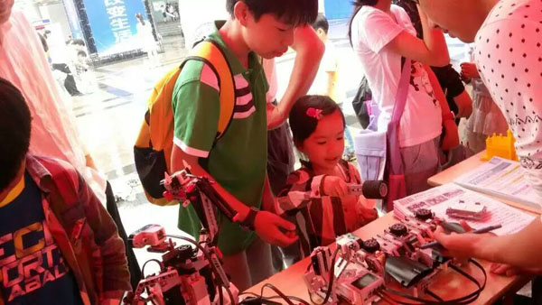 现场孩子体验乐高机器人