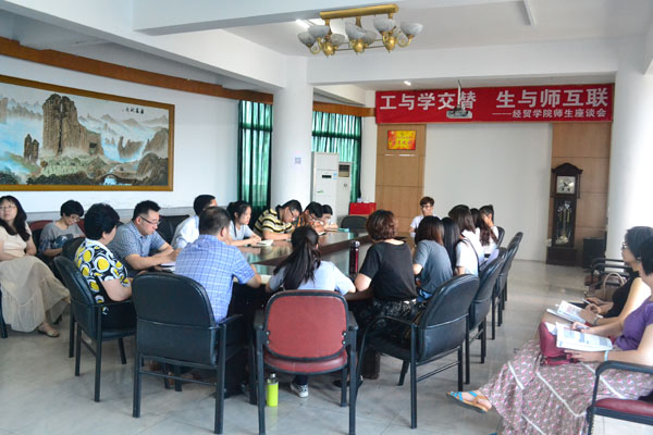 为了聆听学生心声,加强沟通交流,配合分院近期举行的14级各专业中期实习动员大会和13级企业班宣讲会,近日,经贸分院举办了以“工与学交替,生与师互联”为主题的师生座谈会。会议由商务英语专业的金秀金老师主持,分院13、14级28个班的学生代表和分院各专业教师代表、督导、辅导员、行政人员共45人齐聚一堂,促膝长谈。