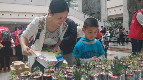 活动一开始,便吸引了不少市民参与到其中,志愿者们为在场的每一个小朋友分发了亲手制作的铅笔花。许多家长带着小朋友积极参与到“生态城市有奖问答”环节,小朋友们不仅增长了知识,也获得了自己喜欢的小盆栽。在“以旧换绿”环节中,大家带着用不着的旧书籍、旧衣物、旧鼠标等闲置物品换取绿色植物。活动现场志愿者们向观众传授种植多肉植物的技巧,许多市民也体验了一把亲手种植植物的乐趣。