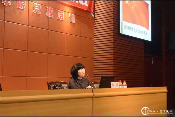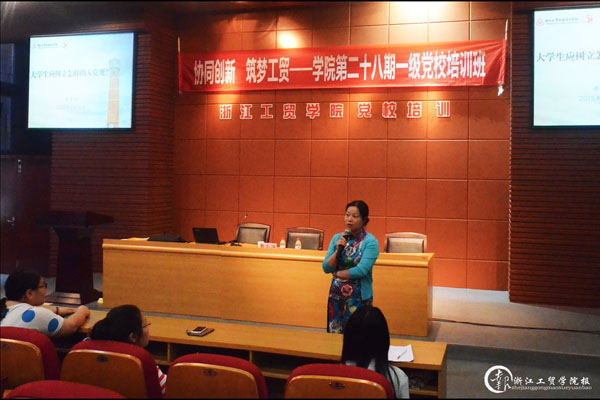 学院党委委员、纪委副书记、党务工作部主任黄专途老师以“大学生应树立怎样的入党观”为题,从“我们是怎样认识中国共产党”、“怎样才能成为一名党员”等一系列问题入手,介绍分析了当前社会多元化的入党动机,指出中国共产党是一个敢于面对困难问题、不回避、能够自我革新的政党,使得在场学员能够更加深刻地理解并逐步端正自己的入党动机。