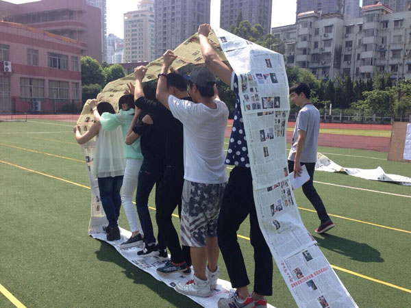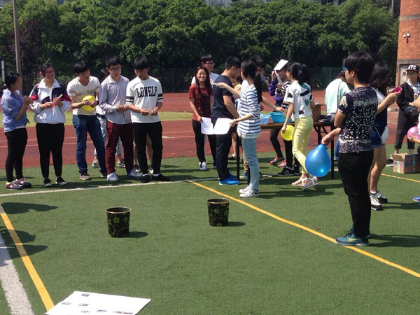 而下午的1点钟活动地点转战至学子广场,在那里进行的“撕名牌”游戏是此次活动的重头戏。各团队拿着牌,在每个队友背后贴上名牌,然后写上各自的名字,在裁判的一声令下,各队伍冲入六号楼教学楼,寻找 “物品”。 场上队员你追我赶,各个楼层都有他们奔跑寻觅的身影。近1个小时的追逐后,决出了最后的胜利者。