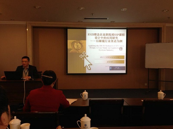 本次年会还开设了4个不同主题的分会场。我院人文系英语教研室的夏侯富生教授、蔡景界、钟伟秀和张瑞娜老师各自在不同分会场宣讲了自己的研究论文《(教育语言学)评述》、《RICH 理念在高职院校 ESP 课程设计中的应用研究》、《翻转课堂在高职英语中的运用及反思》和《基于网络学习共同体的高职英语自主学习能力研究》。三位老师的发言都受到了分会场专家学者们的肯定与鼓励,受益匪浅。