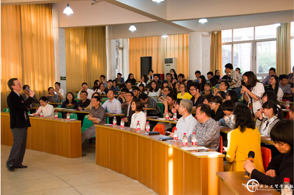 Travis Seamier的中文名为史民安,其此次来校的主要目的是寻求与我院的合作机会,同时也是基于他对温州民间借贷的研究课题,到校之前便事先与我校林贵教授交流,探讨有关民间借贷事宜。在校期间,Travis为学院师生带来了一场生动有趣且富有内涵的公益讲座,主题为“全球金融危机:过去、现在和未来及对温州启示”。讲座内容既涉及全球金融发展的翔实数据,也涵盖了温州民间借贷当前的发展现状及趋势。Travis还极具挑战地选择了用中文讲述,虽然很难清晰地用中文专业术语解读金融现象,但其精神以及讲座所实现的效果是可贵和可圈可点的,受到了广大师生的好评。互动环节中,Travis还用四种语言送出了对学院55周年校庆的祝福。