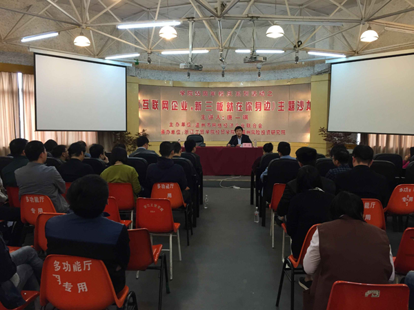 为进一步整合资源,搭建平台,帮助会员企业认识,了解和进军新三板,近日,由温州市网络经济企业联合会主办,我院经贸分院、温州风险投资研究院和网特商学院共同承办的主题沙龙《互联网企业,新三板就在你身边》在学院多功能厅举行。本次活动由温州风险投资研究院常务副院长刘小娟主持,主讲嘉宾唐一端老师系联讯证券投资银行部董事总经理、上海交大安泰经济与管理学院EMBA。