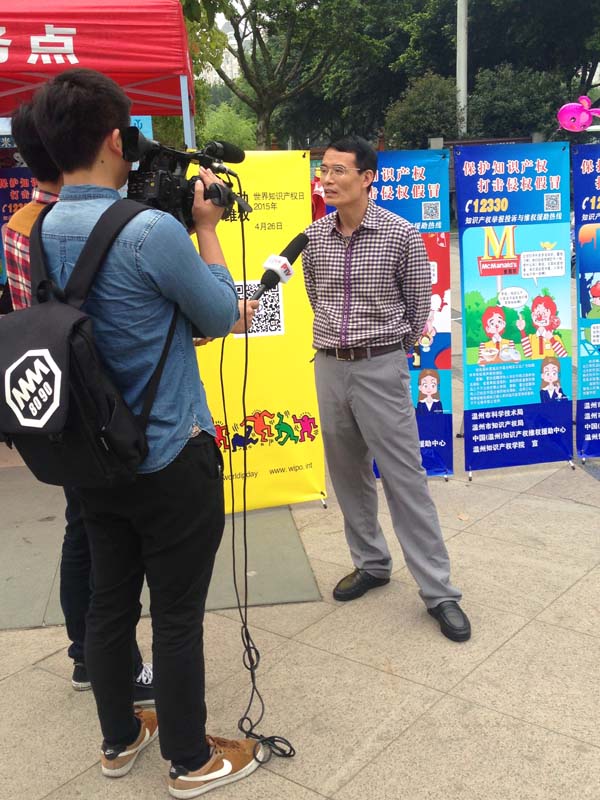 为进一步宣传知识产权、增强市民保护知识产权意识,在4月26日世界知识产权日,知识产权学院、人民网温州频道共同在鹿城区杨府山广场组织开展了“4▪26世界知识产权日”主题宣传活动。学院党委书记何向荣教授出席活动。