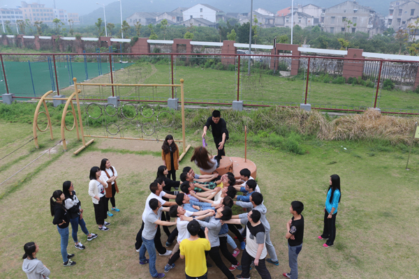 本次训练分室内和室外两部分。室内训练主要通过“抓手指”、“财富明天”、“驿站传书”等游戏,针对学生的创新意识、个人潜质进行的团体辅导。不仅如此,更重要的是加深了同学们之间的信任,为室外训练打下基础。室外主要进行“生死电网”和“信任背摔”两个项目,极大程度得考验了同学们的团队精神和相互之间的信任与被信任。