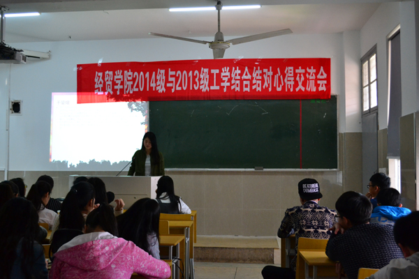 动员入党积极分子参加工学结合经验分享,是经贸学院党建工作的一个传统活动。4月上中旬,经贸学院商务英语专业和市场营销专业举行4场2014级与2013级班级工学结合结对交流会。