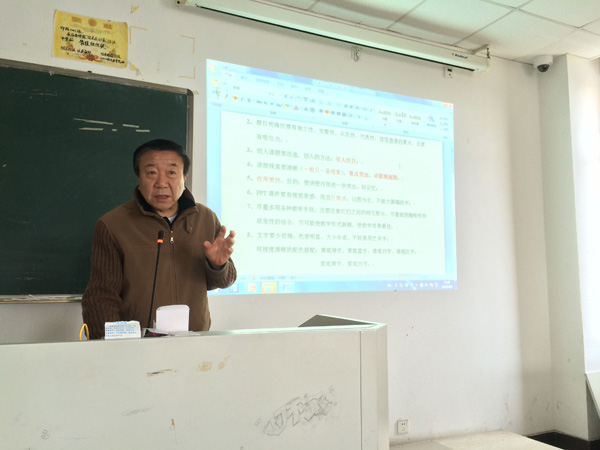 活动由信息传媒学院潘修强老师主持,张海南教授首先针对微课设计要点进行了细致分析。对微课设计选题、主题切入、教学方法、教学手段、PPT课件制作、教师语言、仪表以及师生互动等细节,张教授都做了认真的讲解,为青年教师参加微课竞赛提出了很多指导意见。