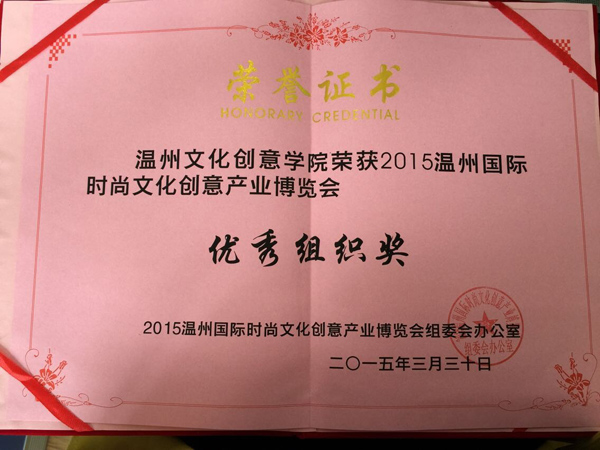 鉴于师生们尽职尽责、热情细心的服务,温州文化创意学院被组委会授予“优秀组织奖”。