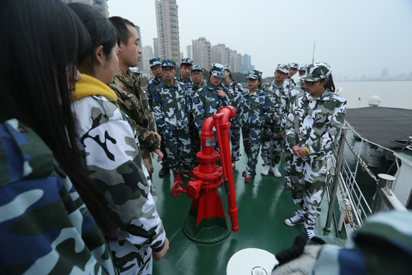 跨出操场登上舰艇——我院组织2014级军训学生参观海警舰艇