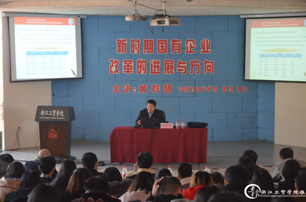 新时期国有企业究竟承担什么样的国家使命?新时期国有企业如何面对国际国内复杂环境的挑战?新常态下,面对市场资源配置起决定性作用的背景下,国有企业改革如何取向?带着这样的问题,3月20日,一号楼阶梯教室,经贸学院邀请了中国社会科学院黄群慧教授作《新时期国有企业的改革进展与方向》专题讲座。黄群慧教授现任中国社会科学院工业经济研究所所长、研究员、博士生导师,兼任中国企业管理研究会常务副理事长,中国社会科学院管理科学研究中心副主。