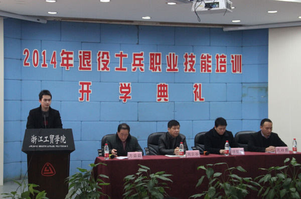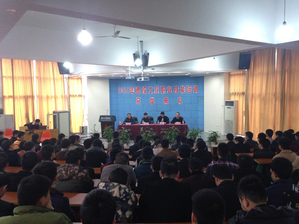 3月4日上午,2014年温州市退役士兵职业技能培训班开学典礼在我院阶梯教室举行,参加开学典礼的有成教学院常务副院长周宗谷、副院长徐登喜、培训中心主任方益益、孔祥勇老师、各班班主任以及全体退役士兵。