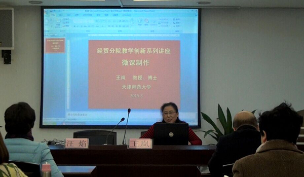 为进一步推进教学创新,提高教师信息化能力,提升课程教学质量,3月7日,经贸分院在风险投资研究院三楼会议室举办创新教学系列讲座——微课制作。经贸分院专门邀请了天津师范大学王岚教授进行主题讲座并进行实际操作指导。王岚现就职于天津师范大学计算机与信息工程学院,为硕士生导师,近年来主持过天津市教育科学规划项目、天津市科委重点攻关项目、全国重点教学科研课题等多个重大项目。