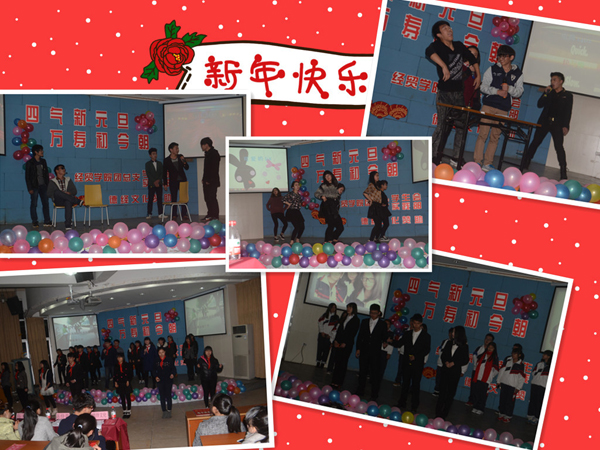 告别属于光荣与梦想的2014,迎接充满惊喜与希冀的2015。近日,经贸学院“四气新元旦 万寿初今朝”元旦文艺汇演晚会在阶梯教室举行。经贸学院党总支书记项光春,团总支书记高莎,辅导员向政、周妍妍、郑雪琦等老师及团总支学生会与2014级全体学生参加了此次晚会。