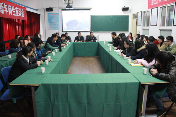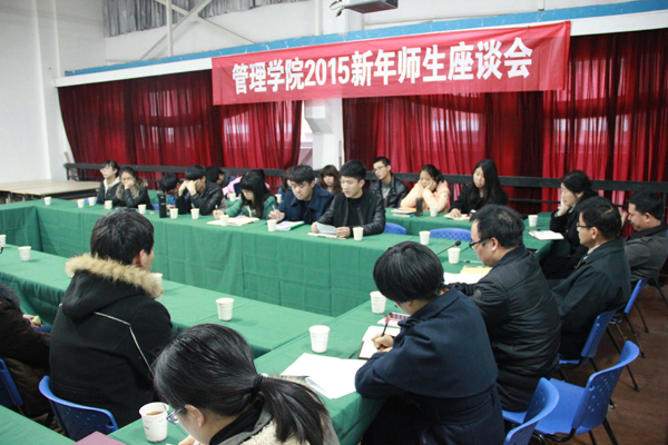 座谈会由张勰老师主持,他与大家分享了2014年度管理学院思政工作完成情况以及取得的成果,嘱咐同学们要加强德育实践,注重个人综合能力提高,积极参与创业创新,自觉参加社会服务。潘毅老师从教学角度总结了本年度分院有关工作,告诫同学们要学好专业知识、体会创新创业、要及时与任课老师沟通,让老师的教与学生的学充分融合。
