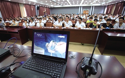 除了组织高一段和高二段的学生集中观看外,三中初一和初二的学生则分别在各自班级观看。
