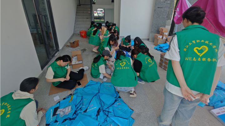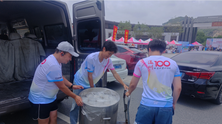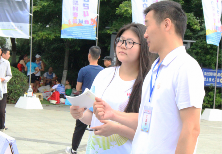 浙江工贸职业技术学院现代管理学院弘恩行志愿团WE服务队以其优良的志愿服务功底和深厚的社会服务意识服务本次赛事,成为本次赛事当之无愧的支持单位。5月17日于杨府山公园东门举行了赛事综合培训工作,就赛事流程、应急处理、物资整理、踩点彩排、服务礼仪及助残相关事项等方面进行深入学习培训。5月19日至20日,志愿者分两批次进行服务,从早上6点开始,到晚上8点结束,各志愿小组分工明确,井然有序地进行签到检录、物资补给、赛道安保、计时计分、跑团引导、摄影摄像等服务工作,确保每一个细节都精益求精,充分展现了WE志愿者们良好的团队风貌。