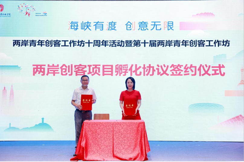 活动现场,温州台商协会与浙江工贸职业技术学院共同签订了《两岸创客项目孵化协议》。这意味着两岸青年创客工作坊的长期、可持续发展有了平台支持和技术支撑。