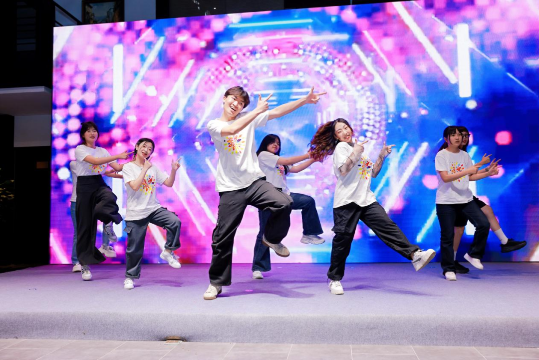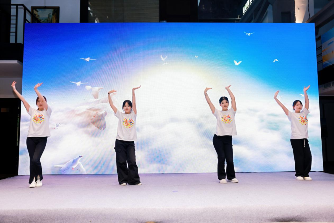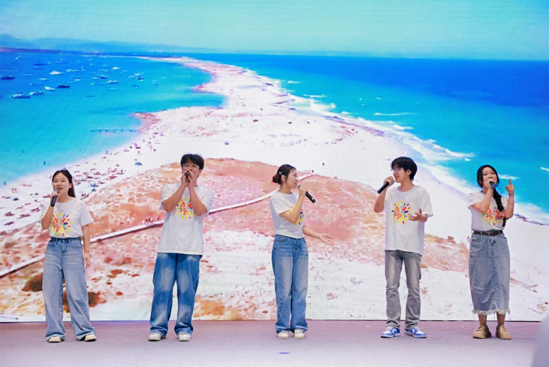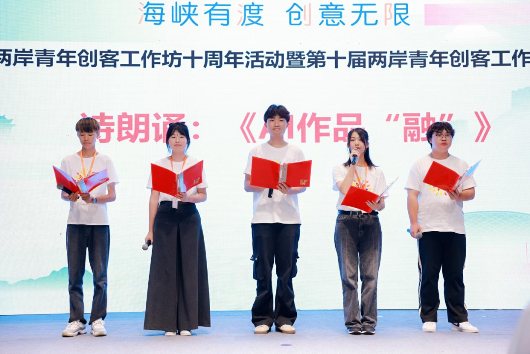 活动的第三篇章“创未来”,是由两岸110名青年师生共同参与的青年大联欢。热情的两岸青年充分展现了当代青年的蓬勃朝气,他们表演了《We're together》《AI作品“融”》《相亲相爱一家人》等欢快的文艺节目。